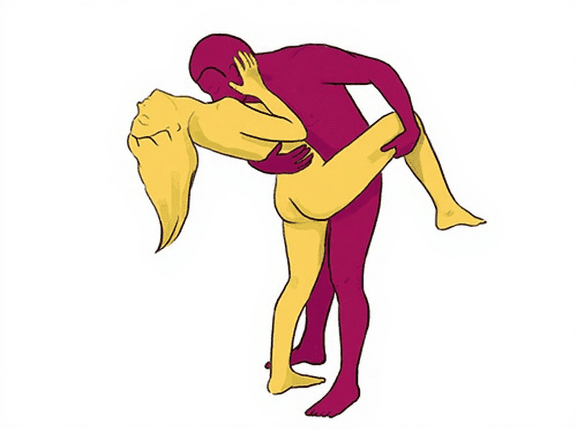 Stand facing each other, her back against the wall for leverage as she wraps one leg around your waist. Hoist her up fully if you're strong, impaling her pussy on your cock as you thrust upward. Balance is key, but the urgency makes it hot—feel her nails dig into your shoulders while you fuck her standing, sweat dripping down your joined bodies.